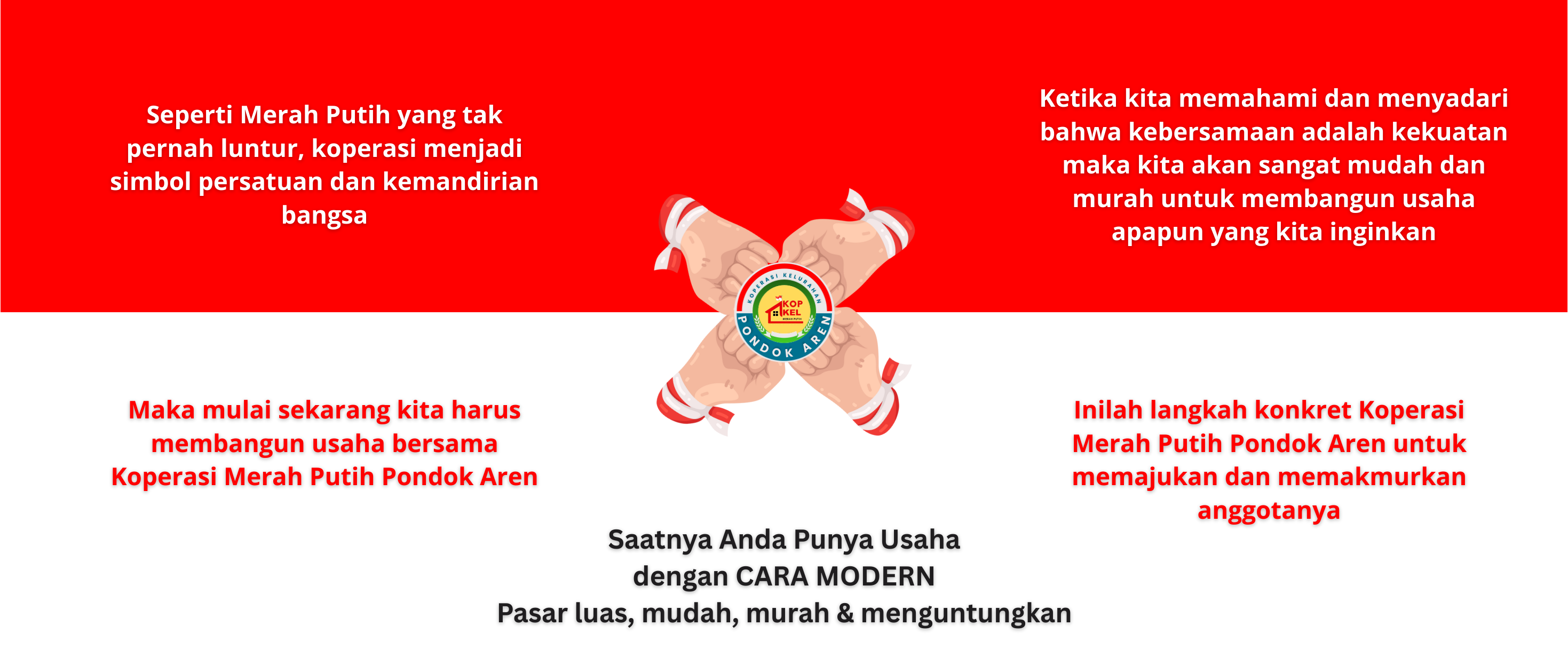 KMP Pondok Aren Modern bukan sekadar bisnis, tetapi sebuah gerakan. Kami berani menantang cara lama, tumbuh melalui kolaborasi komunitas, dan memanfaatkan teknologi untuk menciptakan dampak sosial yang positif. Kami adaptif, tangguh, dan visioner dalam menghadapi perubahan ekonomi dan teknologi. Inilah KMP Pondok Aren Modern membangun masa depan bersama. Apakah Anda siap berjuang dan bertumbuh bersama kami?